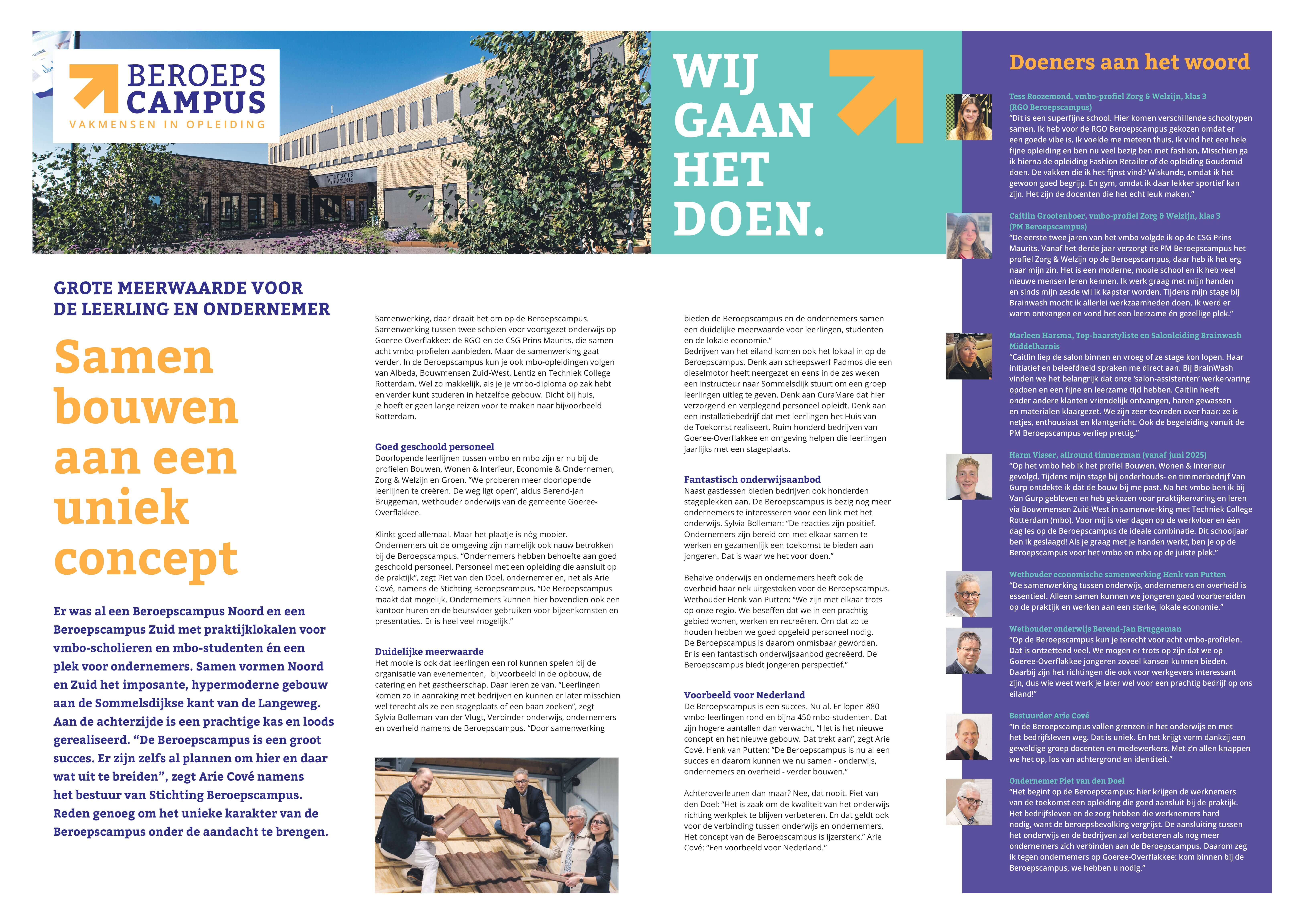 Samen bouwen we aan de toekomst van Goeree-Overflakkee. Van lokale talenten tot wereldse vakmensen. Wij gaan het doen!