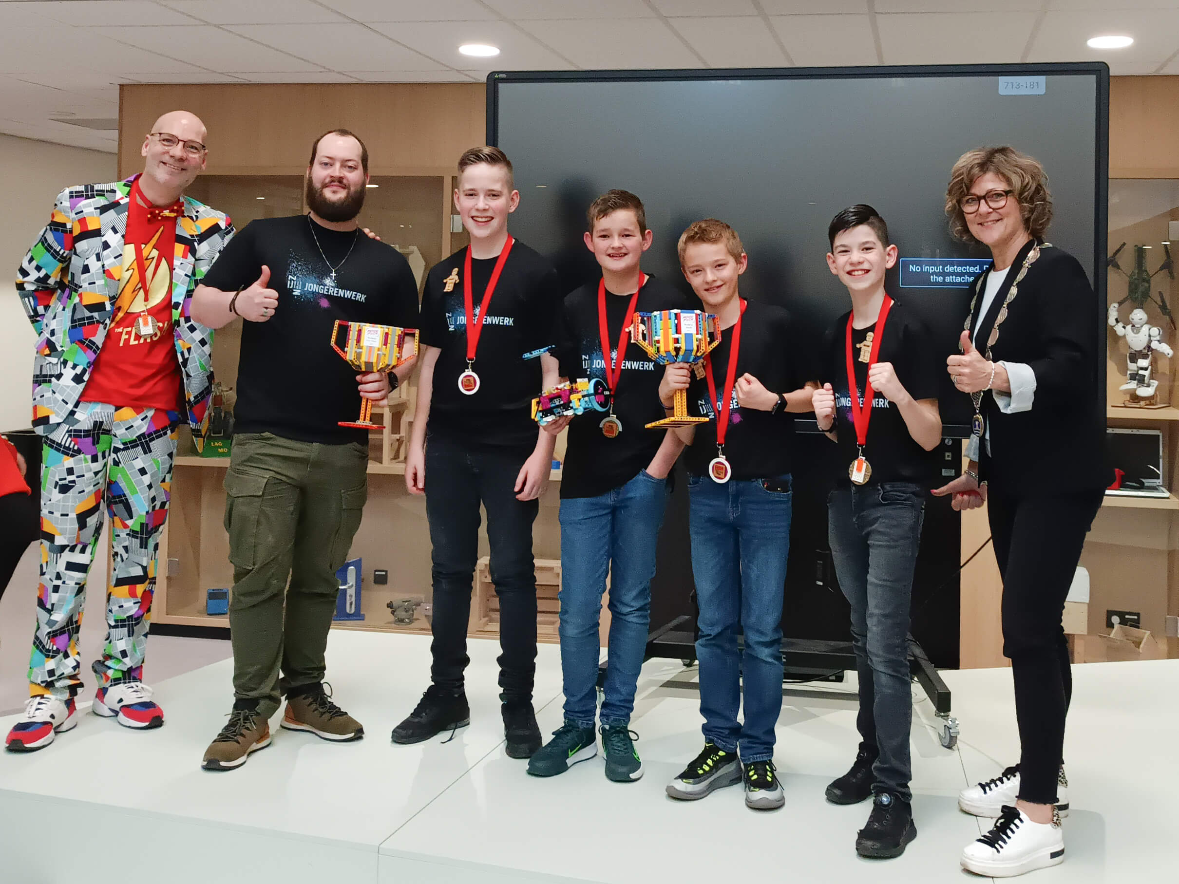 Vrijdag vond voor de derde keer de eilandelijke finale plaats van de FIRST LEGO® League Challenge. Dit is een internationale technologiewedstrijd die leerlingen uitdaagt te denken als wetenschappers en technici. Met Lego bouwen en programmeren de jongeren hun eigen robot om hier vervolgens opdrachten mee uit te voeren tijdens de wedstrijd. 17 teams uit het basisonderwijs (groep 7/8) en 3 teams uit het voortgezet onderwijs streden die dag tegen elkaar. Het was een spannende wedstrijd waarbij verschillende Lego-trofeeën te winnen waren. De overall-prijs werd gewonnen door het team van jongerenwerk Goeree-Overflakkee. Burgemeester Ada Grootenboer-Dubbelman reikte de prijzen uit en sprak de deelnemers toe: ‘Met dit soort kanjers gaan we het in de toekomst wel redden!’ Het was een gezellige dag. Met een bijzondere medaille voor elke Lego-fan gingen de jongeren na afloop weer huiswaarts.